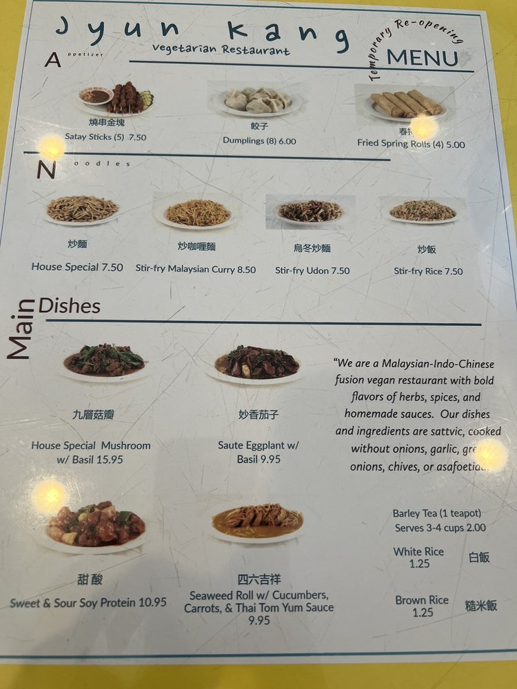 Introducing the Menu at Jyun Kang Vegetarian Restaurant